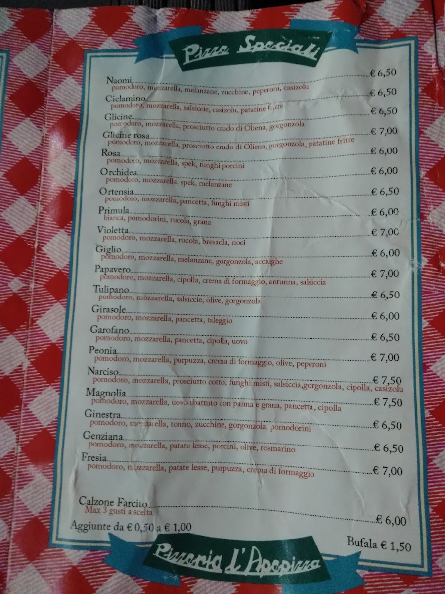 Pizzeria 'l' Ape Pizza' Di Gianni E Marisa offers a delightful menu that combines traditional Italian flavors with a rustic charm. Their Grigliata Mista stands out as a must-try, a perfect option for those craving a hearty, grilled selection of meats, showcasing the quality of local ingredients. For something more refined, the Tagliata Di Vitello Rucola Grana Pomodorini Verdure Grigliate is a crowd-pleaser, with its tender veal paired beautifully with fresh arugula, aged cheese, and grilled vegetables, creating a deliciously balanced dish. The menu also features a variety of pizzas, pastas, and other Italian classics, making it an excellent spot for anyone seeking authentic flavors in a warm and welcoming setting. Whether you’re in the mood for a substantial meal or just a quick bite, the options at 'l' Ape Pizza' cater to all tastes, making it a standout choice in Oliena.